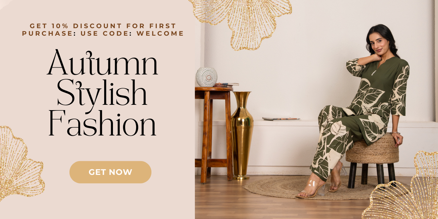 Pure Cotton Olive Green Leaf Printed Co-ord set