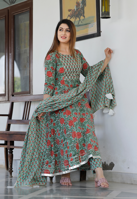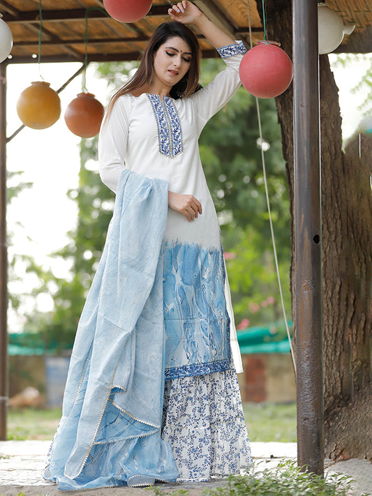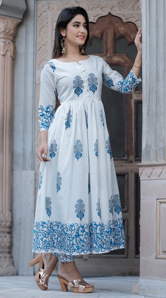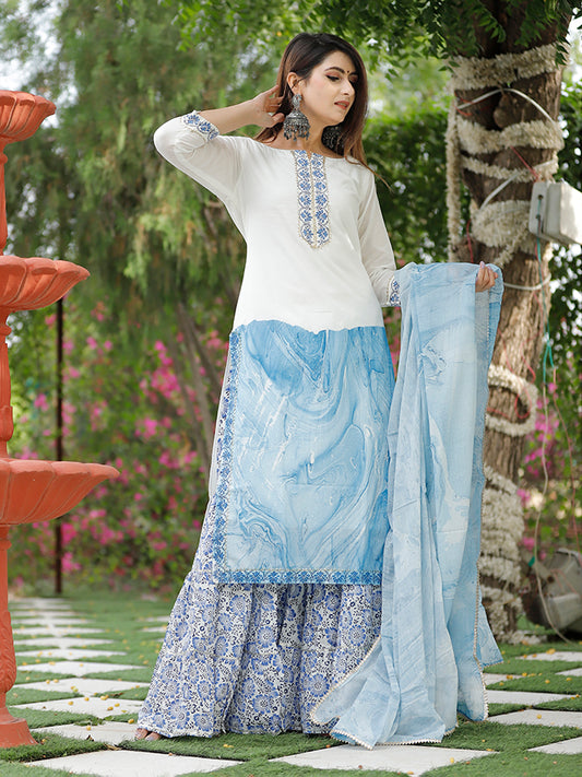 Royal Blue Floral Printed Kalidar Palazzo Set