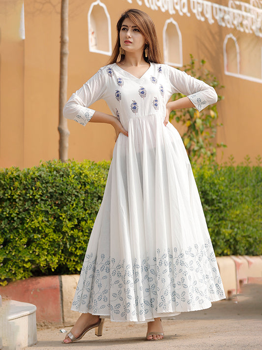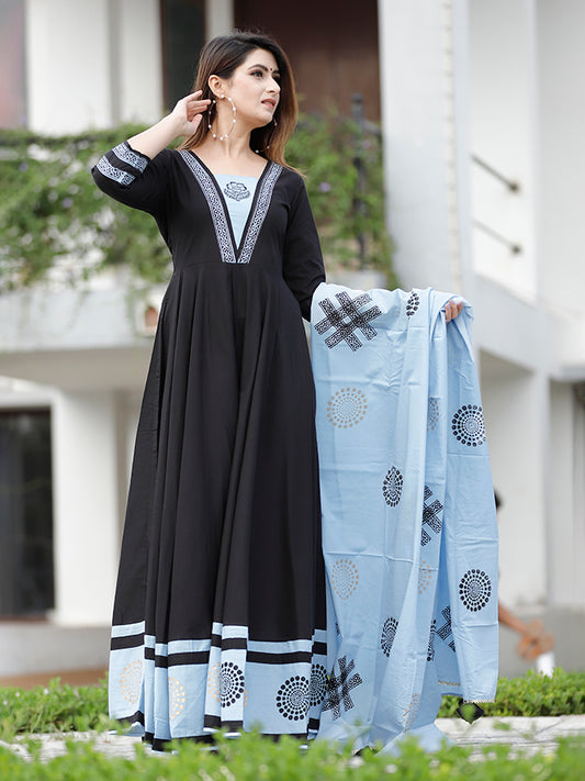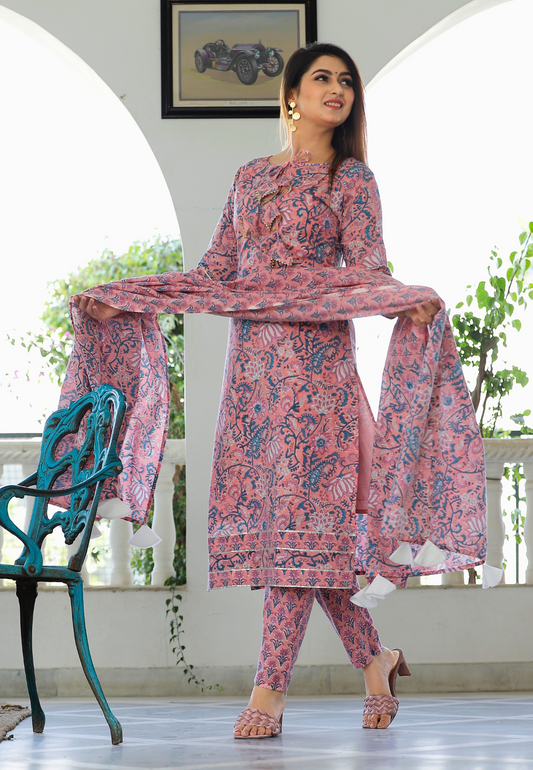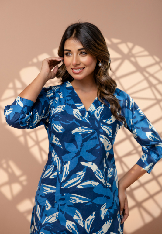 Bold & Beautiful in Blue Leaf Print Cotton Kurta Set