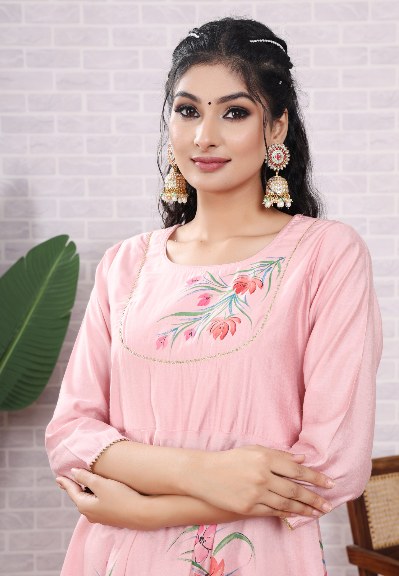 Celebrate grace with this pastel pink modal silk ensemble, featuring delicate hand-printed florals. Soft, lightweight, and effortlessly elegant for every occasion.