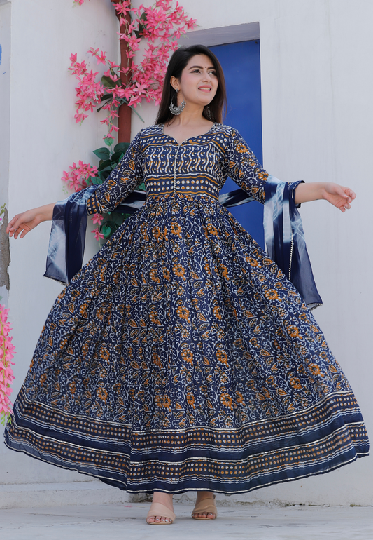 Indigo Floral Printed Dress Set