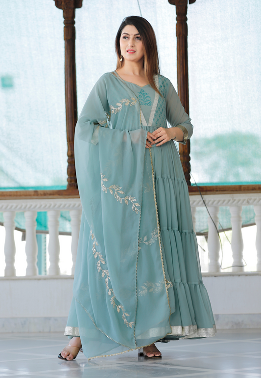 Sea Green Hand Block Printed Tier Dress
