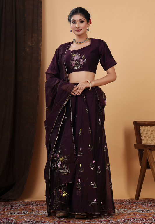 Vine Bloom Elegance Handcrafted Lehenga Set